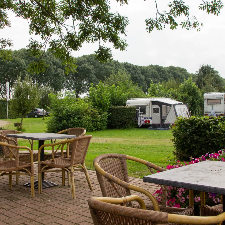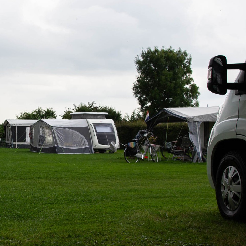 Voor tent of vouwwagen is er eventueel een aparte plaats "in het Rondje". Hier is 6 Amp stroom. Uitzicht over de weilanden.